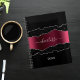 Black, burgundy and faux silver, agate, marble stone print as background. Personalize and add your name and a year. The name is written with a modern hand lettered style script.