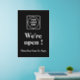 Welcome customers in style with this black Now Open storefront decal. Perfect for shops, restaurants, cafés, salons, or offices, this custom design allows you to add your business logo and opening hours for a professional branded look. Durable and easy to apply, it’s the ideal way to highlight your grand opening or daily hours with a sleek modern touch.