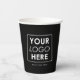 A modern black minimalist personalized business paper cup business logo and text. Personalize with your logo and text to create your own design. Customize even further with a custom paper cup background color.