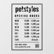 Minimalist custom business window decal with opening hours in black. Simple modern vinyl windows decal with placeholders for your company name, phone number, website and QR code. The adhesive film is attached to the inside of the store front. Further opening times window sticker templates and small business marketing items can be found in the corresponding pet business Zazzle collection from © y.BEE PAPERIE