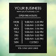 Looking for a simple and professional way to display your business hours? Look no further than our Window Cling! With Zazzle's personalized button, you can easily write down your business name and schedule and stick it to your windows or doors. This sleek and versatile cling is perfect for any business, whether you're a dental clinic, a hair salon, or a cafe. Your customers will appreciate the convenience of being able to quickly and easily see your opening hours, and you'll appreciate the boost in foot traffic. Upgrade your storefront with our Window Cling today! =)