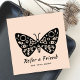 The Feminine Black Butterfly & Blush Pink Beauty Salon Referral Card features an elegant design with a soft blush pink background and a delicate black butterfly accent. This stylish card encourages client referrals with a chic, feminine touch, making it perfect for beauty salons. Its sophisticated design reflects your salon's branding while offering a professional way for clients to share their positive experiences with others.