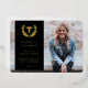 A formal but modern graduation photo announcement for any type of medical qualification. Featuring a full-bleed photo with a color overlay and the caduceus symbol surrounded by a laurel wreath in a foil color of your choice. The template text for the graduate’s details is also foil pressed and is completely customisable, so the font size, style and placement can be changed. The back features a solid colored background and template text for a longer message. If you would prefer to include no text on the back, just delete it before ordering. If you would prefer a photo on the back of the card, delete both the colored background and the template text and upload your own photo. The design is available in other colors and with designs for specific medical qualifications in my store.