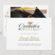 Elegant black calligraphy on a white background with a custom photo, graduation party invitation.