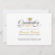 Elegant black calligraphy on a white background with a custom photo, graduation party invitation.
