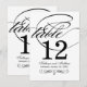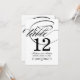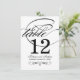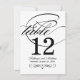 Dramatic sweeping calligraphy and graceful flourishes in black create a bold, sophisticated wedding table number card. The flowing script and classic design bring timeless elegance to formal and black-tie reception tables. The couple's names, wedding date, and table number are easy to personalize. Each table number must be individually personalized and added to the cart one at a time.