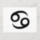 Black Cancer Zodiac Symbol Postcard