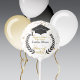 Custom balloon for the perfect decor touch for that special high school or college graduation party with your personalized text. Features image of a black grad cap and laurel wreath accented with faux gold confetti. Your choice of several sizes. See matching napkins, paper plates and other color groups also available in this same design