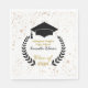Paper party napkins for that special high school or college graduation party with personalized text. Features image of a black grad cap and laurel wreath accented with faux gold confetti. Matching paper plate, also red, blue and other color groups also available in this same design