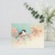 This beautiful design features an incredibly sweet black-capped chickadee perched gracefully on a textured, horizontal branch. Rendered in a soft, elegant watercolor style, the bird has a dark cap and wings that contrast perfectly with its warm orange underbelly and crisp white face. The character is nestled among a cascade of hand-painted leaves in varying shades of soft peach, coral, and muted orange, suggesting a gentle transition into the autumn season. Artistic watercolor washes in teal and cream drift through the background, creating a sense of a peaceful, sun-drenched garden on a crisp morning. The overall aesthetic is bright, peaceful, and full of natural elegance, making it an irresistible choice for any fan of birdwatching, gardening, and classic botanical art. This cheerful chickadee postcard is a wonderful choice for sending a "thinking of you" note to a fellow nature enthusiast or a playful greeting to a friend who loves backyard birds. You might choose to use this beautiful bird card for a fall-themed tea party invitation or to celebrate a fun family afternoon at a local bird sanctuary with your family members. It also makes a precious decorative piece for a home office wall or a bright addition to a nature journal as a small token of autumnal beauty. This versatile design is also an excellent choice for environmental awareness announcements, outdoor wedding thank you notes, or as a heartwarming way to share a short message of joy for any situation or event.