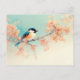 Black Capped Chickadee on Peach Autumn Leaf Branch Postcard
