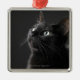Black cat against black background, close-up metal ornament