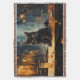 Black Cat and Cafe at Night Throw Blanket