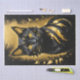 A simple, elegant, and refined design featuring a black cat set against a luxurious gold background. The cat's sleek silhouette is outlined in bold black, with its eyes subtly highlighted in gold, creating an air of mystery and sophistication. The background is a rich, deep gold, providing a striking contrast to the cat's dark figure while maintaining a sense of balance and harmony. The design is minimalist yet powerful, with black and gold as the only colors, evoking a sense of timeless elegance and understated luxury.
