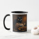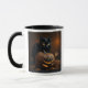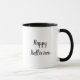 Black cat and a spooky upside down face pumpkin Halloween coffee mug.