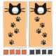 Black Cat and Paw Prints Cornhole Set with customizable background color and text.