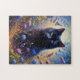 Black Cat and Purple Wildflowers Oil Painting Jigsaw Puzzle