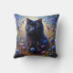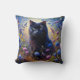 Black Cat and Purple Wildflowers Oil Painting Throw Pillow