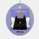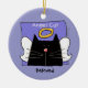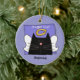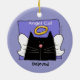 Black kitten angel memorial ornament. Cat has wings and a halo. Design on light blue background. Add your own cat's name to personalize. Original design by S. Fernleaf.