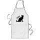 Black cat aprons | Personalizable text. Cute gift idea for cat person / lover. Personalize it with your pet name. Black kitten silhouette design. Customizable background color. Available in short and long version.