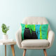 Black Cat Art Pillow, "Cat Mom", green and blue abstract colors, two black cats on the front and large black cat on the back in coordinating colors.