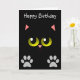 Fun card for cat lovers, the face of an adorable black kitty cat with big round eyes and a pink nose staring at you with his paws pressed to the front of the card. Across the top in white lettering are the words Happy Birthday, this is a template to use as it is or replace with your own message. Inside is the same kitty peeking from a corner and another template to replace the inside text if you require.. On the back of the card the same kitty cat appears in full.