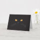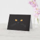 Black cat with orange glowing eyes. Bottom whisker curls into the word, "Boo!" Inside reads, "Happy Halloween!"