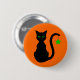 A silhouette cartoon of a black cat with green eyes on an orange background. A green star dangles from the cat's tail.