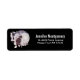 Address labels with a watercolor painting of a black cat and a light purple and pink floral bouquet. Standing in front a a large full moon. Stylish and magical.