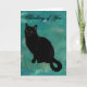 This "Thinking of You" notecard with cat design was created from a digital photo of our paper shredding black Bobo cat and was placed on a background image. Bobo was a rescued kitten who was bottle fed and had a strong will to live. His mother obviously had been killed and his siblings had crawled out of some overgrown weeds starving. We took them to the animal shelter. We did not find him. He found us by crawling in the rain to our front door which took him 2 days. He was so small it is a miracle not only that he made it but that he had not drowned in the puddles that had formed. I had to carry him everywhere I went as he had to be fed every couple of hours just like a newborn baby. He was so small we could not put him on the floor for fear he would get stepped on. Needless to say, I am not sure he knows he is a cat. He was for years the only cat we had with a tail and loves to agitate everyone by hitting them in the face with his tail. Customize the text to create the cat lover card you need such as "Thank You", "Happy Birthday", "Congratulations", "Missing You" or other message.