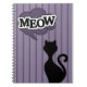 Black cat cartoon purple meow quote notebook