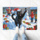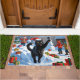Black Cat Christmas Festive Snow Scene Doormat