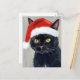 Black Cat Christmas Painting Santa Hat Holiday Postcard