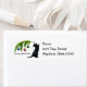 A black cat holds a decorated evergreen branch on these Christmas kitty return address labels.