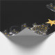 Illustration of a Christmas tree made entirely of black cats with glowing yellow eyes, adorned with snowflakes and golden stars, set against a black background