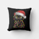 Black Cat Christmas Tree Lights Funny Santa Kitten Throw Pillow