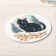 Black cat cozy winter snow round paper coaster