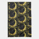 Black Cat Crescent Moon Floral Gold Halloween Kitchen Towel