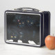This is a standard metal lunchbox that appears to work just fine. We designed this box ourselves with an uploaded photo and custom text on the front and back. It looks absolutely beautiful except the front of the lunchbox is not centered like it shows in the photo. The print borders don't align with the inset flat part of the box where the preview photo online showed it perfectly centered in there. The back looks nice and centered though.