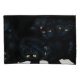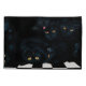 A striking and playful illustration featuring a cozy pile of black cats with glowing golden eyes, nestled together against a bold dark background and a graphic black-and-white floor. Rich textures and expressive faces give this artwork a whimsical yet slightly gothic flair, perfect for cat lovers who adore moody aesthetics. Ideal for people that celebrate the mysterious charm of black cats.
