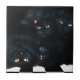 A striking and playful illustration featuring a cozy pile of black cats with glowing golden eyes, nestled together against a bold dark background and a graphic black-and-white floor. Rich textures and expressive faces give this artwork a whimsical yet slightly gothic flair, perfect for cat lovers who adore moody aesthetics. Ideal for people that celebrate the mysterious charm of black cats.