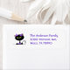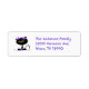 Sweet label done in white, with adorable graphics of a black cat, with a big purple bow, on it's head. Return address text, in purple, is fully customizable to suit your needs. Great for every day use or special occasions.
