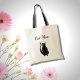 Cute black cat cartoon personalized tote bag with a winking kitty hand drawn sketch and script typography design. With black lettering, you can add your own text. A fun accessory item for when you are on the go.