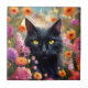 Black Cat Flowers Garden Cat 736 Ceramic Tile
