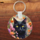Black Cat Flowers Garden Cat 736 Keychain