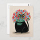 Black cat & flowers postcard