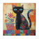 Black Cat Folk Art Ceramic Tile