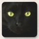Custom cork coasters set for cat lovers featuring a close-up portrait of a beautiful black cat with mesmerizing green eyes. A great accessory for your Halloween table!