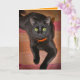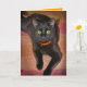 A handsome black cat (aka Blackberry) with bright green eyes and an orange collar says Happy Halloween. Or personalize the message to suit any occasion. For cat lovers. Of course black cats bring good luck.