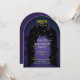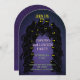 A purple Halloween invite framed by an archway of black cat silhouettes with glowing spooky eyes. Perfect for spooky socials, kid parties etc.